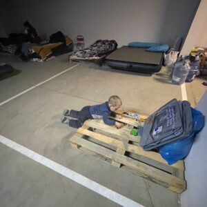 Halyna, her son, husband, and mother-in-law are currently staying in an underground parking lot in another village of the Kyiv region. She believes it’s safer in the shelter. During the day, they leave the shelter to take a shower and warm up in a house of their acquaintances who left their home. But staying there is unsafe because the house has no basement.