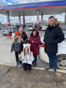 Lija och hennes man samlade ihop barnen. Vi klädde på oss väldigt snabbt. Vi tog med oss mormor och farfar. När vi lämnade staden hördes sirener och explosioner bakom oss. Min man och jag åkte till Lviv. Sedan till Polen – utan honom, för i Ukraina förbjöds män i åldrarna 18-60 att åka utomlands under krigs lagstiftningen.